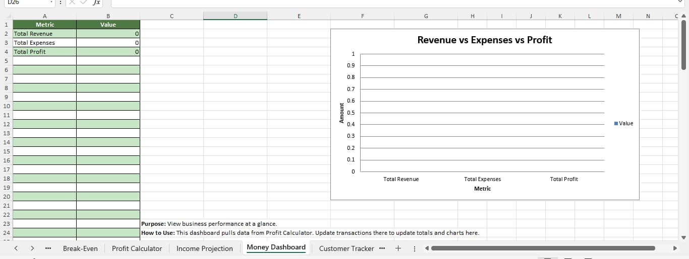 - Master Excel Workbook with pricing, break-even, and income planning tools